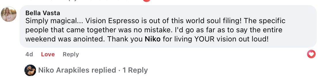 “I wasn’t sure what to expect from Vision Espresso, but it has truly impacted my life. I feel more creative, more empowered in my decisions, and I’m living with so much more fulfillment.”